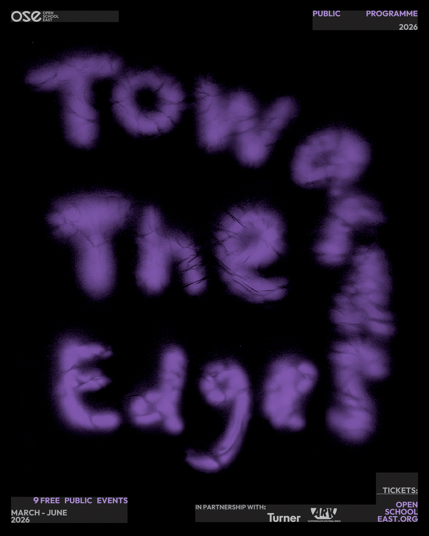 Towards the Edges is organised and led by OSE’s Associates 2026: Milly Aburrow, Serena Mirambeau Brey, Hannah Chaney, Annabelle Edginton, Ffion Colquhoun-O’Brien, Ezekiel, Clara Frain-Atallah, Imogen Naomi Herd, Eve Jefferies, Suds McKenna, Cara Murray, Dre Spisto, Helen Savage and Awra Tewolde-Berhan.