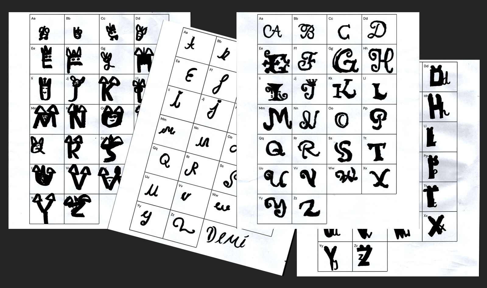 Young artist members of Despacito Art School learnt about typography, symbols and signs and made their own fonts and symbols with drawing, collage and found materials to create a new typeface for Home is where the garden is.