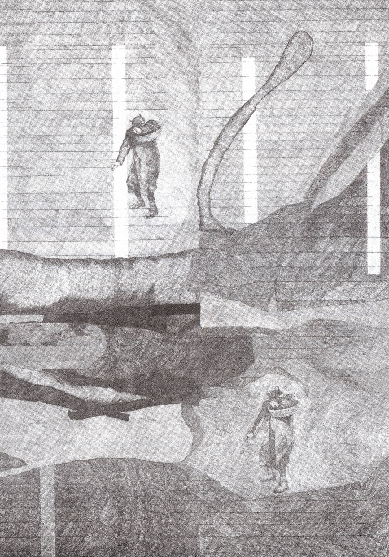 Sid’s work departs from Kafka’s unfinished play ‘The Warden of the Tomb’. The play centres around workplace disputes and class divisions. These works could be read as adaptations that address the politics underpinning who makes a complaint and how it is understood.