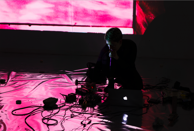 During her time at Open School East Katie developed her research into modes of protest and ways of resisting the insidious slipping of ecological and social crisis. She developed her skills in sound-work and began to think about sound and time as tools for accessing hidden knowledges. During the LIMBO residency Katie began to think about the dance floor as a space of resistance and the time-shifting potentials of sound. As part of this, she hosted a ‘cosmological protest rave’ at Cliftonville Lido, a performative event which evoked the history of the Lido raves through sound and movement. For Gut Feelings Katie developed film, sound and performance work that used the fracking site in Lancashire to think about the echo of the ecological crisis and the spreading of environmental toxicity.